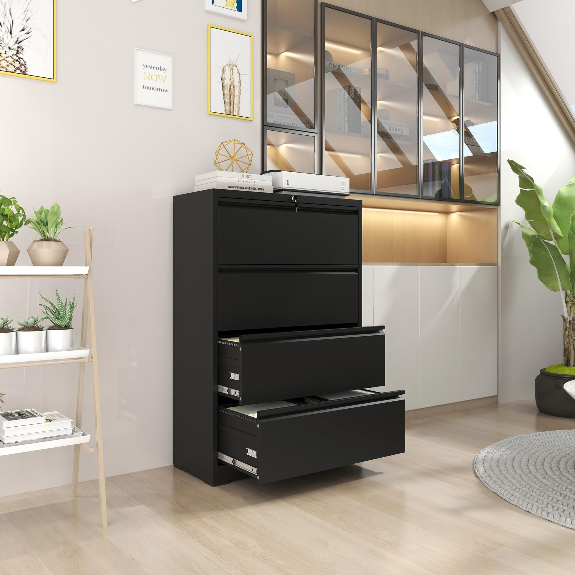 Elevate your home office organization with the VIYET 4-Drawer Tall Lateral File Cabinet—where heavy-duty durability, eco-friendly design, and silent functionality converge. This tall steel cabinet is crafted to tackle large storage needs while keeping your workspace safe, clutter-free, and stylish.