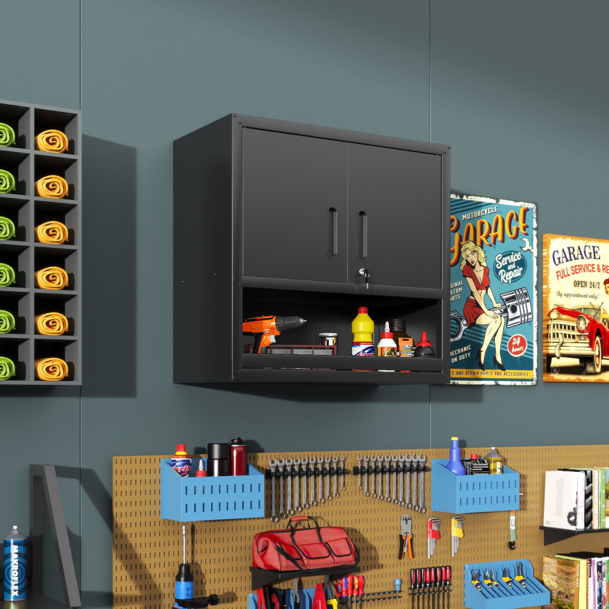 Elevate organized storage with the VIYET Classic Wall-Mounted Metal Cabinet—where durability, security, and versatility meet timeless design. Tailored for garages, offices, warehouses, and homes, this 30.3-inch tall cabinet features 2 locking doors, 1 open drawer, and 1 adjustable shelf, balancing secure protection for valuables and convenient access to daily necessities, while its classic black style complements any space.