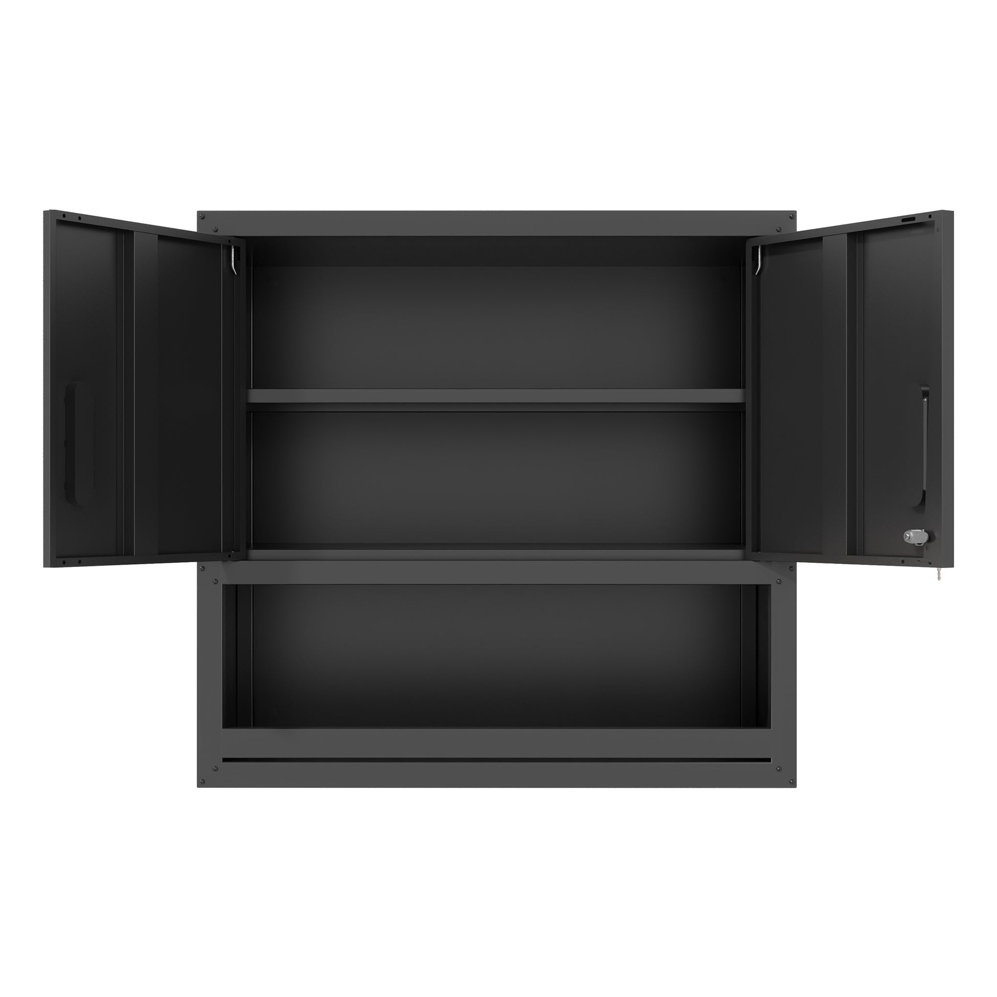 Space-Saving Wall-Mounted InstallationWall-mounted design frees up precious floor space, making this cabinet a perfect choice for crowded garages, narrow offices, or compact warehouses. The vertical 30.3"H structure maximizes wall height utilization, while the slim 11.8"D depth avoids protruding excessively, keeping walkways clear and maintaining a tidy layout. Its classic black finish and timeless style blend harmoniously with industrial workshops, traditional offices, or modern homes, adding both functionality and aesthetic appeal.