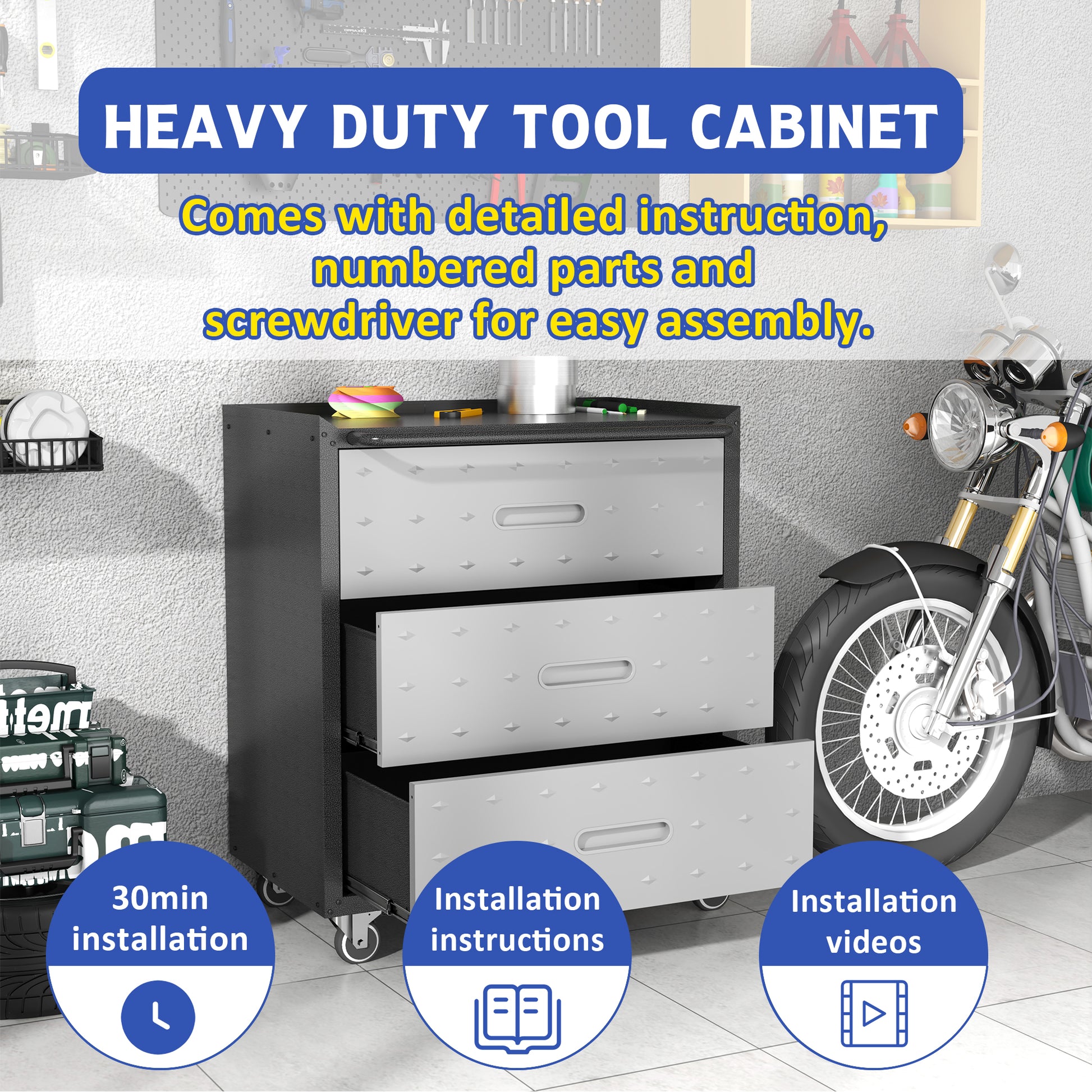 Tame clutter and boost mobility with the VIYET 3-Drawer Heavy-Duty Metal Storage Cabinet—where industrial strength meets smart organization. Designed for garages, workshops, homes, and offices, this mobile cabinet combines durable construction, thoughtful storage details, and easy maneuverability to simplify your space.