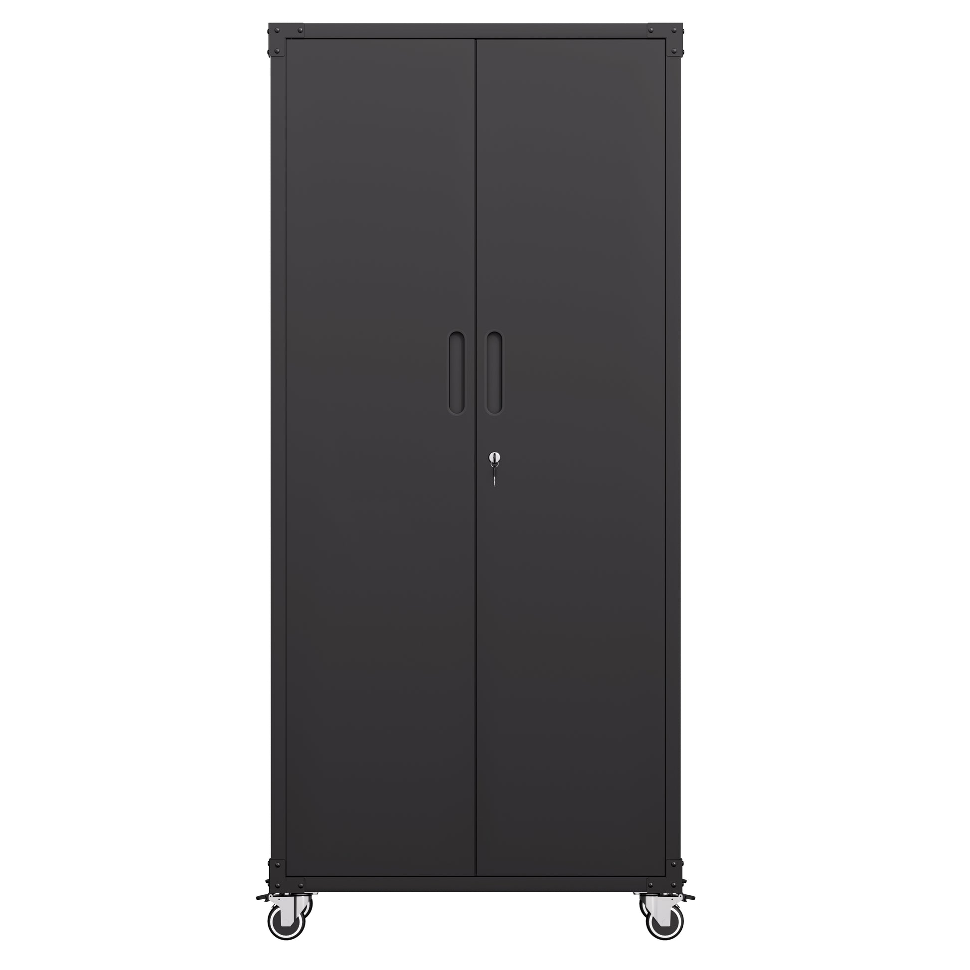 Elevate large-scale storage with the VIYET 71" All-Black Heavy-Duty Mobile Metal Cabinet—where ultra-capacity, durability, and safety converge. Designed for garages, offices, schools, and homes, this spacious cabinet features 3 adjustable shelves, 2 locking hinged doors, and 360° lockable casters, balancing massive storage capacity with flexible mobility and reliable security, while the sleek all-black classic style complements any space.